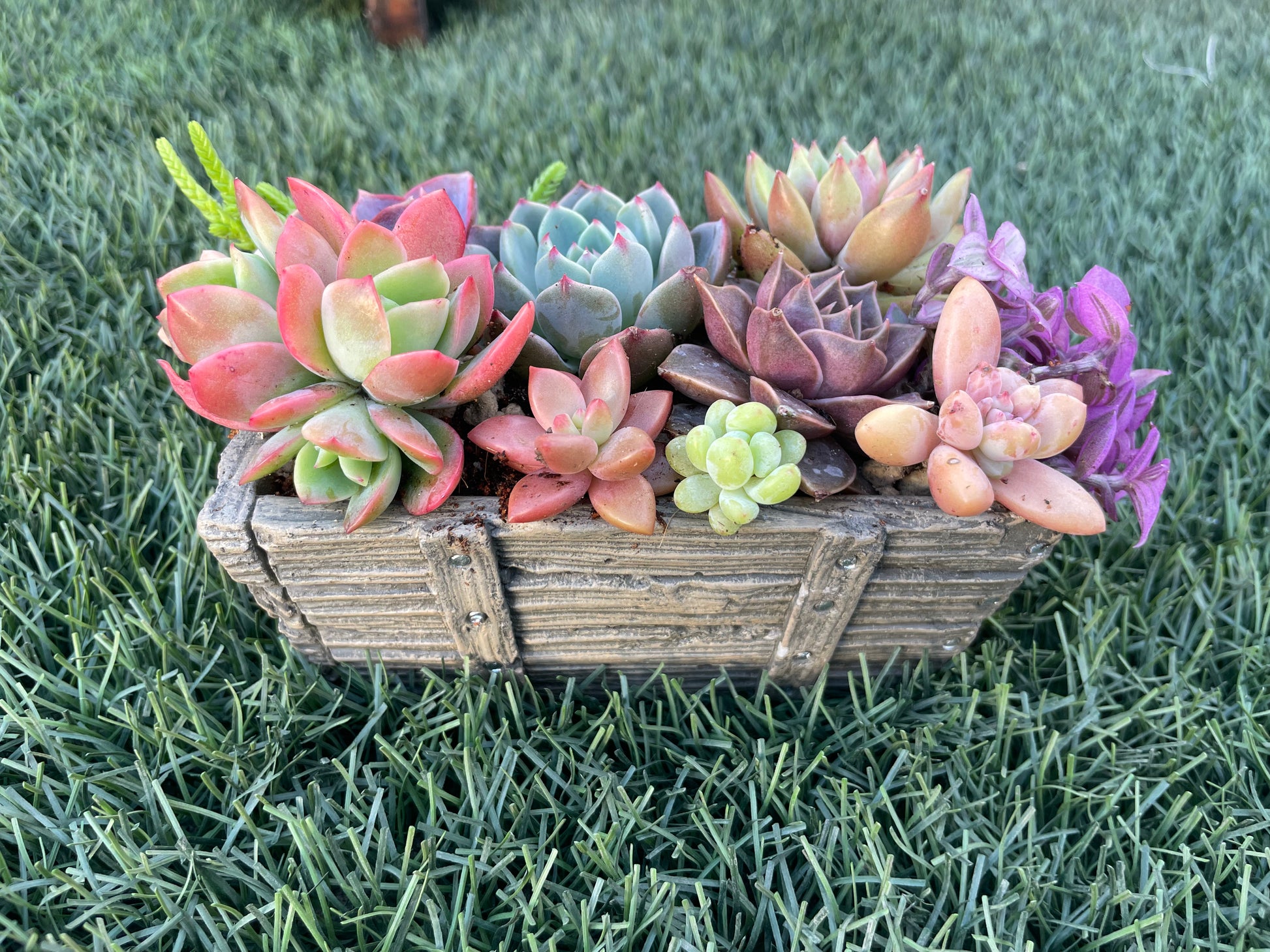 Las combinaciones de suculentas son un regalo muy original y aguantan mucho tiempo en la misma maceta.