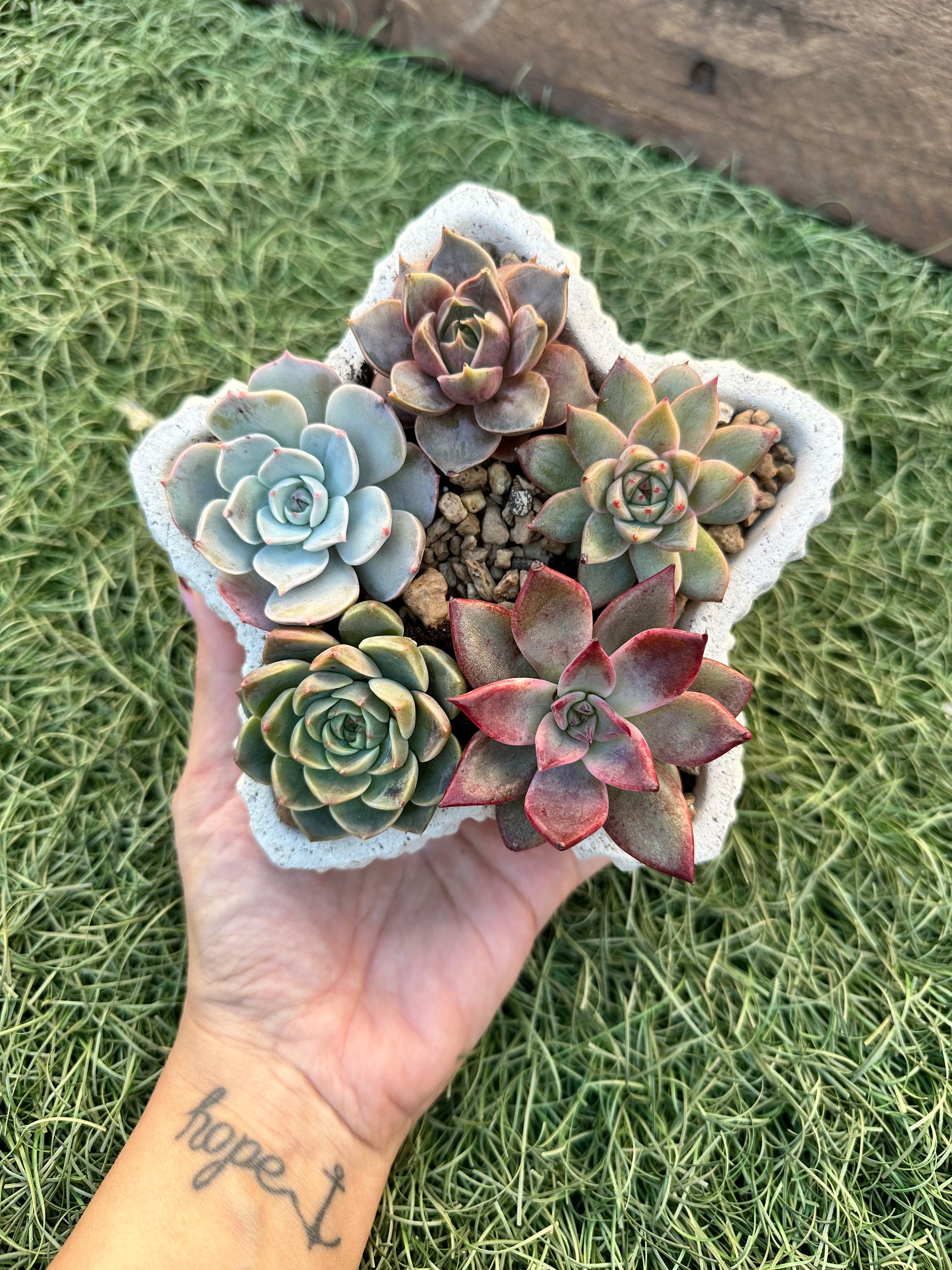 🌿 Maceta artesana en forma de estrella con suculentas seleccionadas