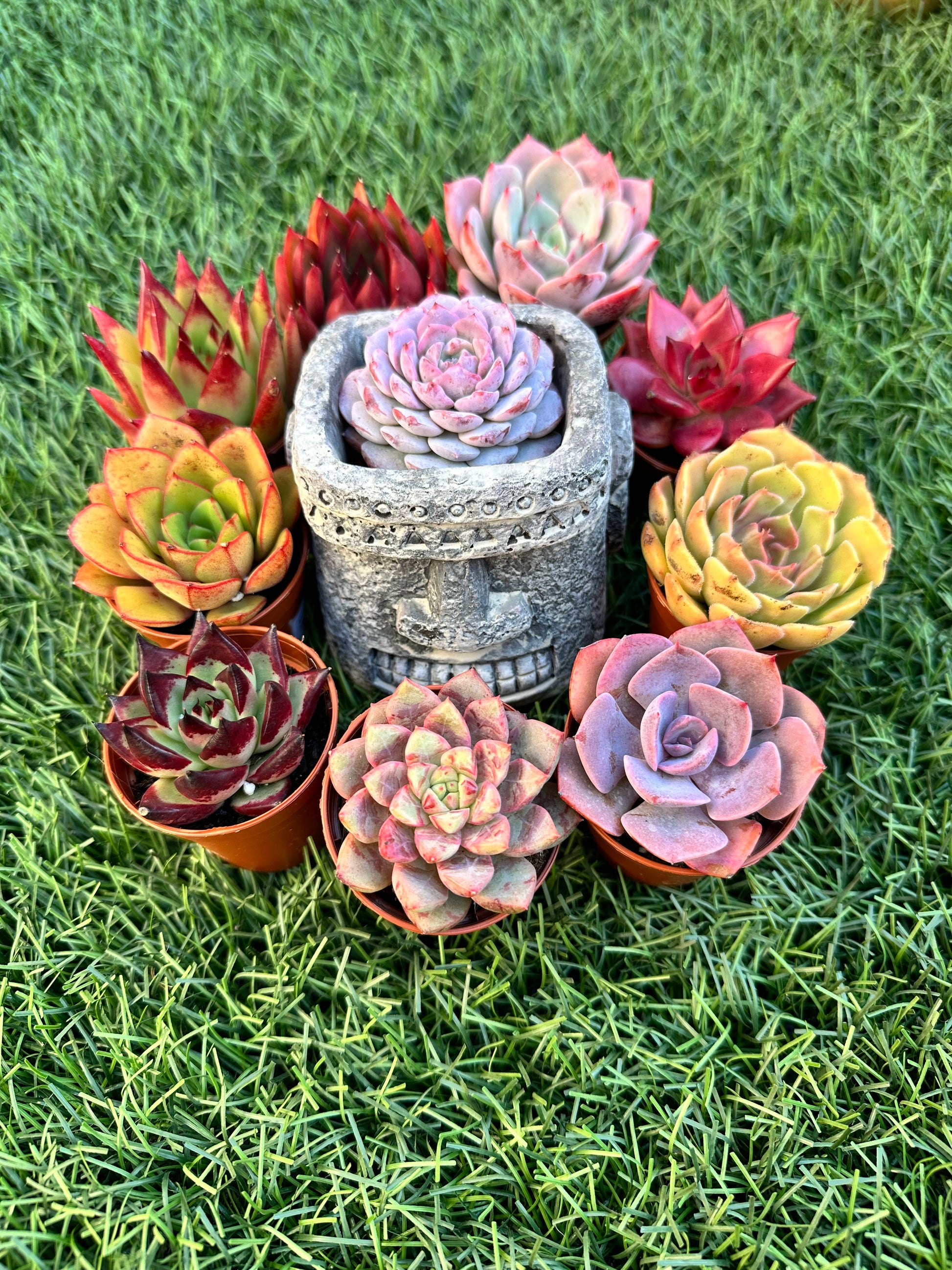 - 4 suculentas vivas (seleccionadas según disponibilidad)