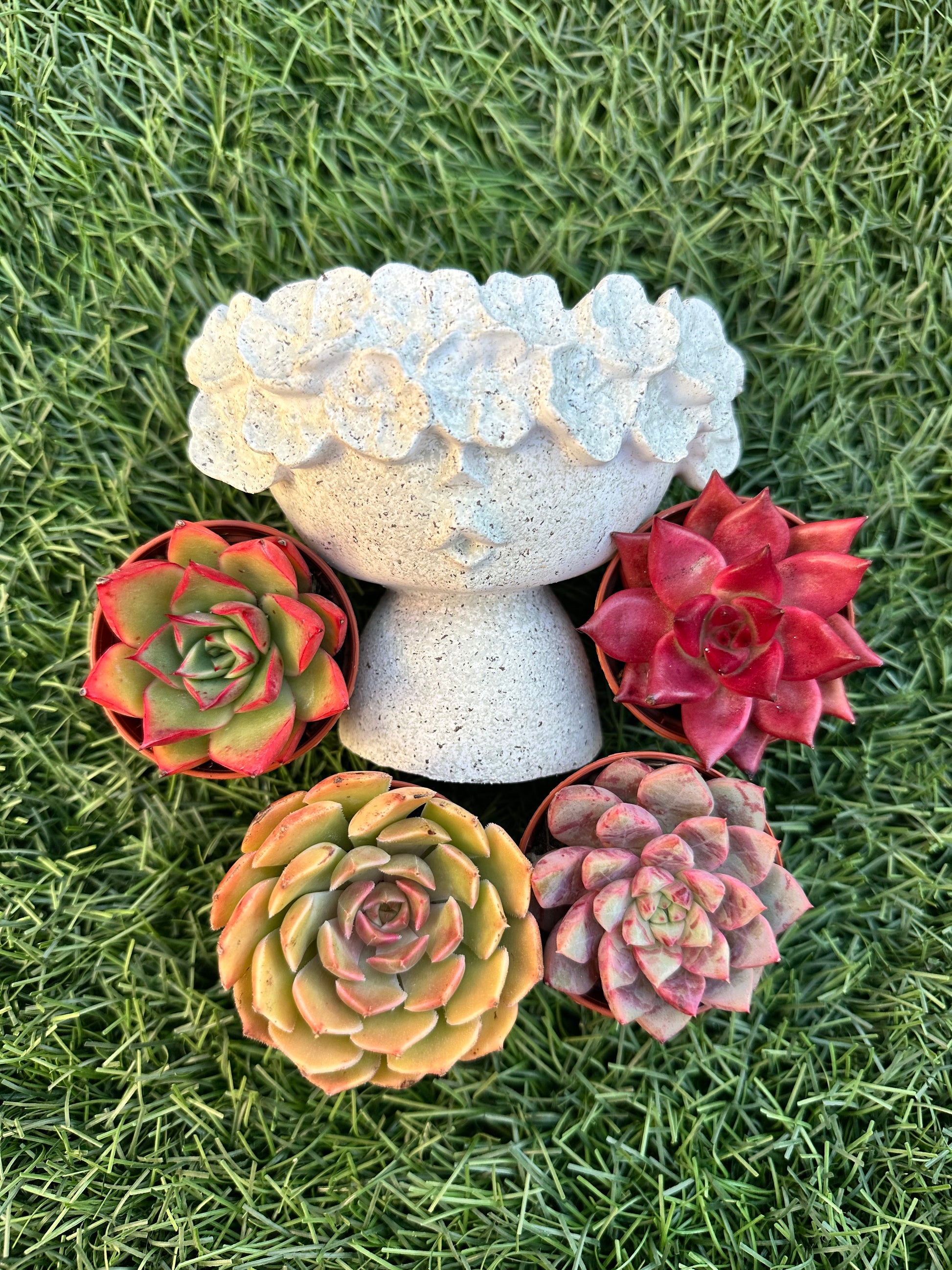 Elige tu maceta favorita y recibe una selección de 4 suculentas combinadas para crear un conjunto equilibrado y decorativo.